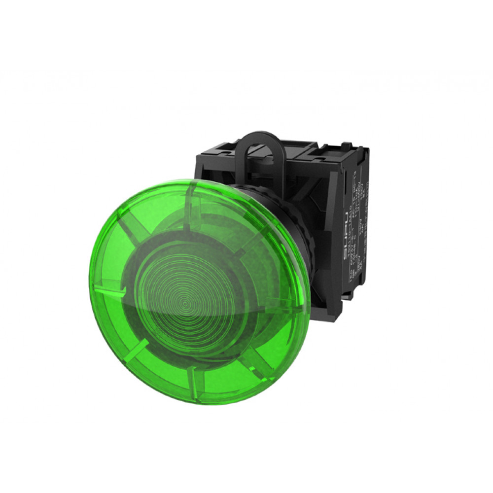 Кнопка грибовидная, без блокировки, с подсветкой, пластиковое переднее кольцо, без контактной группы, диаметр головки кнопки 40 мм, диаметр посадочного отверстия: 22 мм, цвет: зеленый