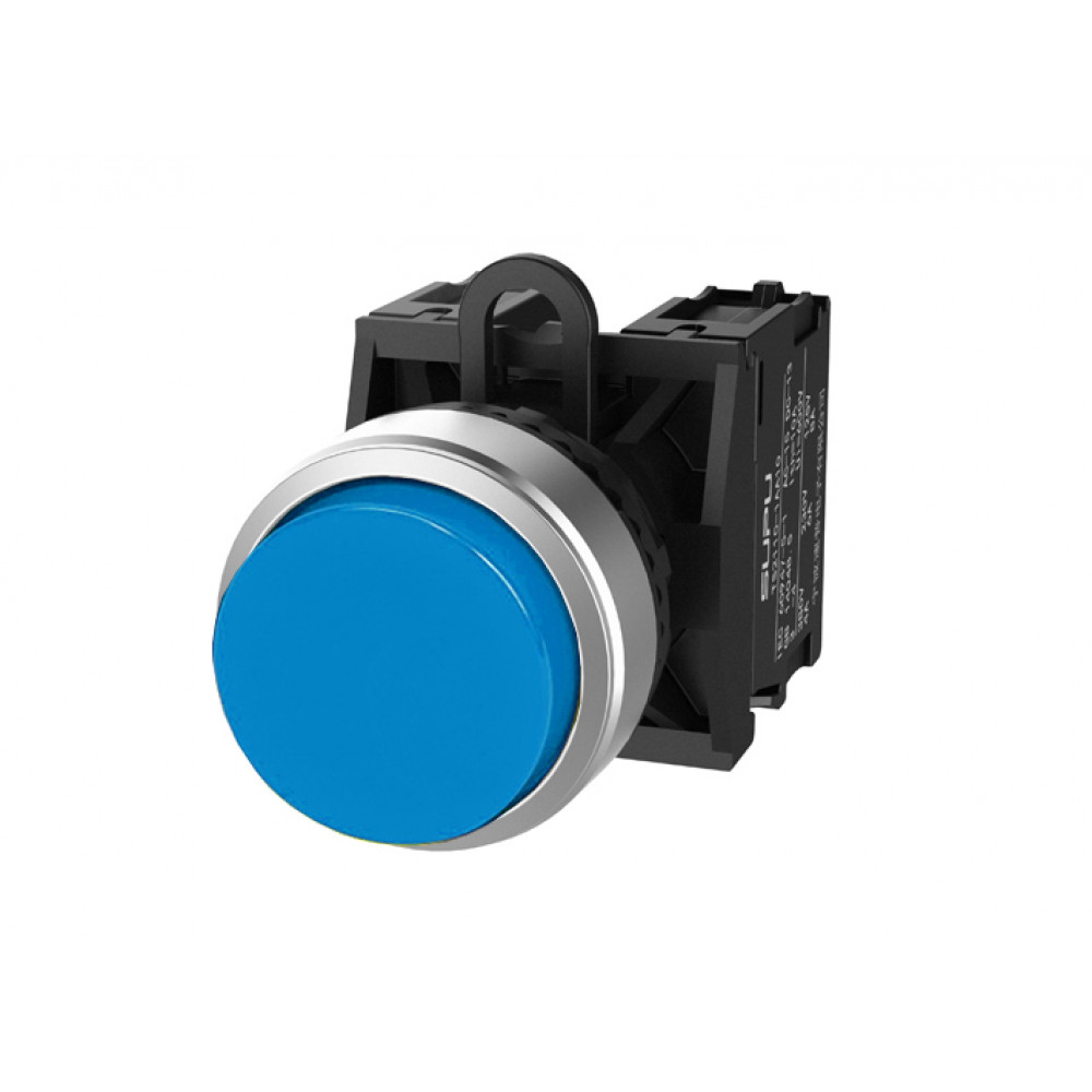 Кнопка круглая выпуклая, без блокировки, без подсветки, алюминиевое переднее кольцо, без контактной группы, диаметр головки кнопки 29,5 мм, диаметр посадочного отверстия: 22 мм, цвет: синий