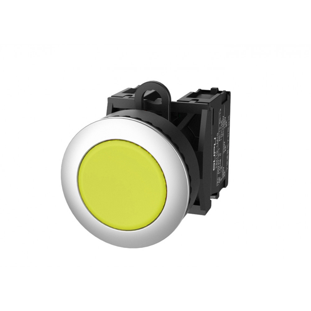 Доставка Кнопка плоская (желтая) TS2520-0CL30-S20 , Кнопка круглая плоская, с блокировкой, без подсветки, утопленное алюминиевое переднее кольцо, с мгновенным нажатием, с контактной группой 2NO, диаметр головки кнопки 36 мм, диаметр посадочного отверстия: 22 мм, цвет: желтый