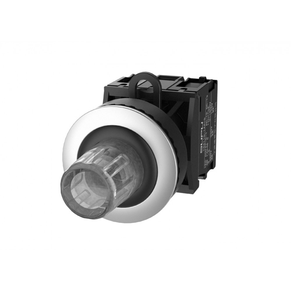 Кнопка "СТОП" (прозрачная) TS2527-0RL70-S20, Нажимная кнопка "СТОП", с блокировкой, LED AC 220V, алюминиевое переднее кольцо, с мгновенным нажатием, с контактной группой 2NO, диаметр головки кнопки 36 мм, диаметр посадочного отверстия: 22 мм, цвет: прозрачный