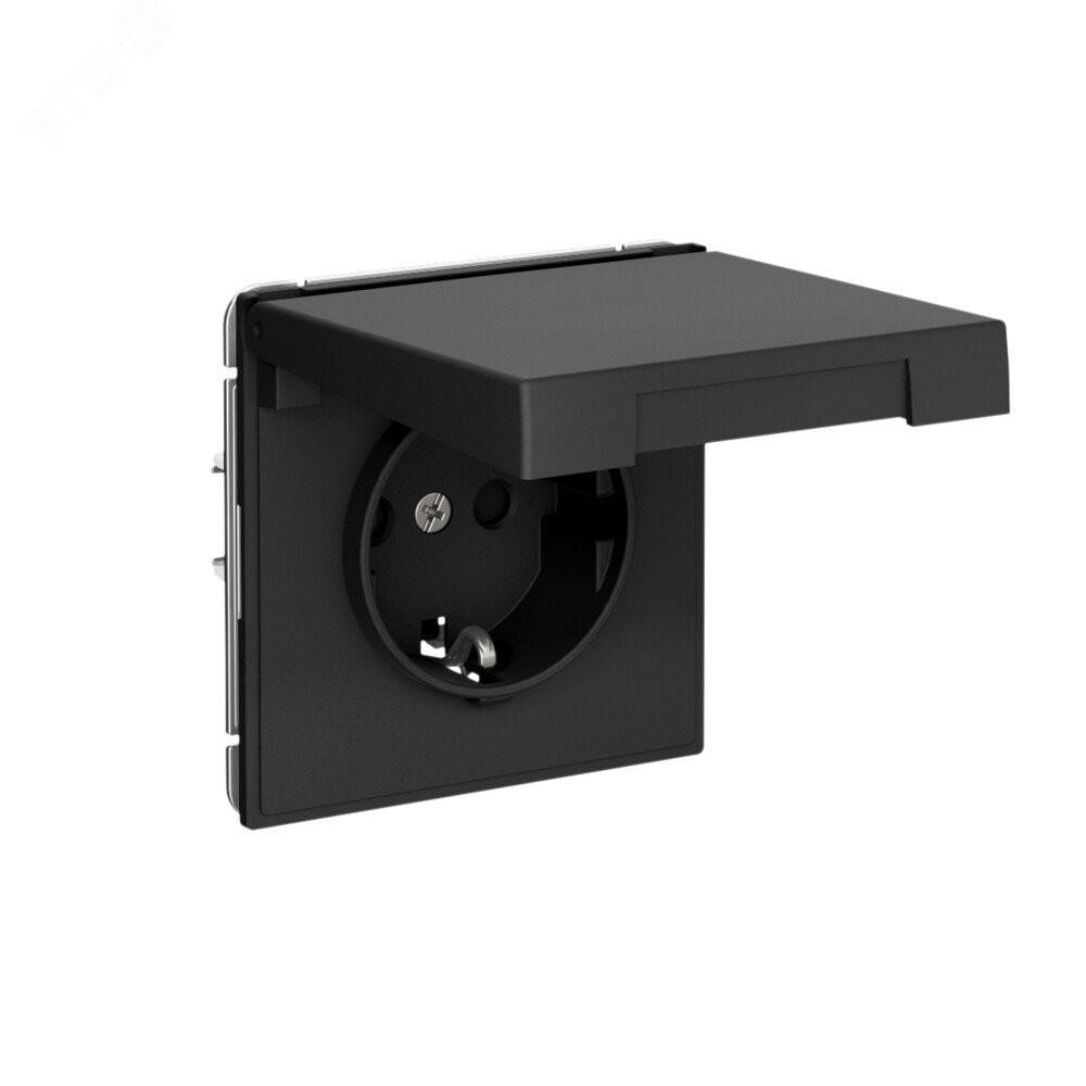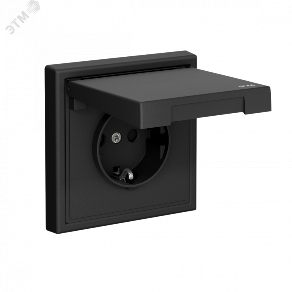 ARTGALLERY РОЗЕТКА с заз.со шт.с крышк, 16А, IP44, механизм, быстрозажимные клеммы, карбон GAL441046S, Розетка открытого монтажа