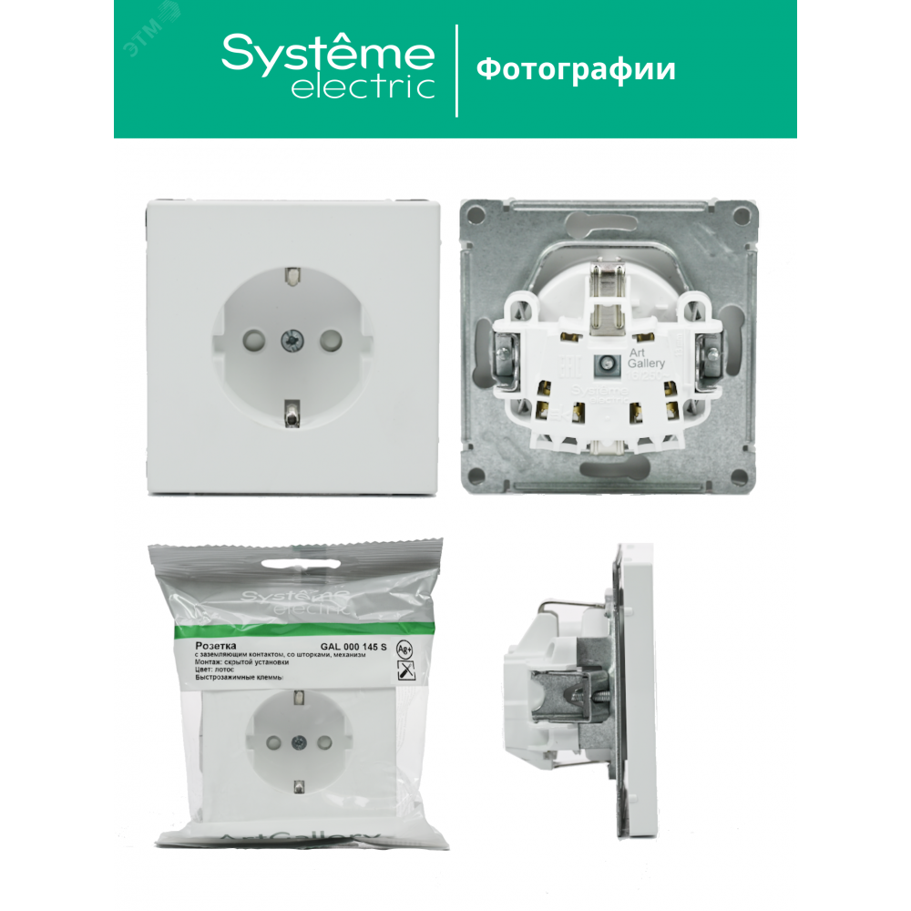 Доставка ARTGALLERY РОЗЕТКА с заземлением со шторками, 16А, механизм, быстрозажимные клеммы, белый GAL000145S