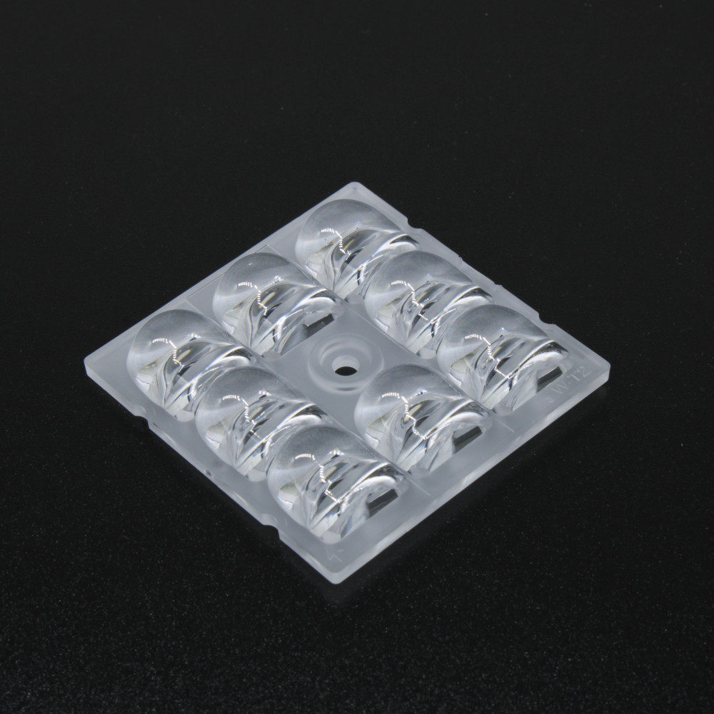 Доставка AJSP50D8LED45G , Групповая квадратная линза на 8 светодиодов 5050/3535/3030 , Asyммetric 45°, 50x50мм H:8.11мм, PC
