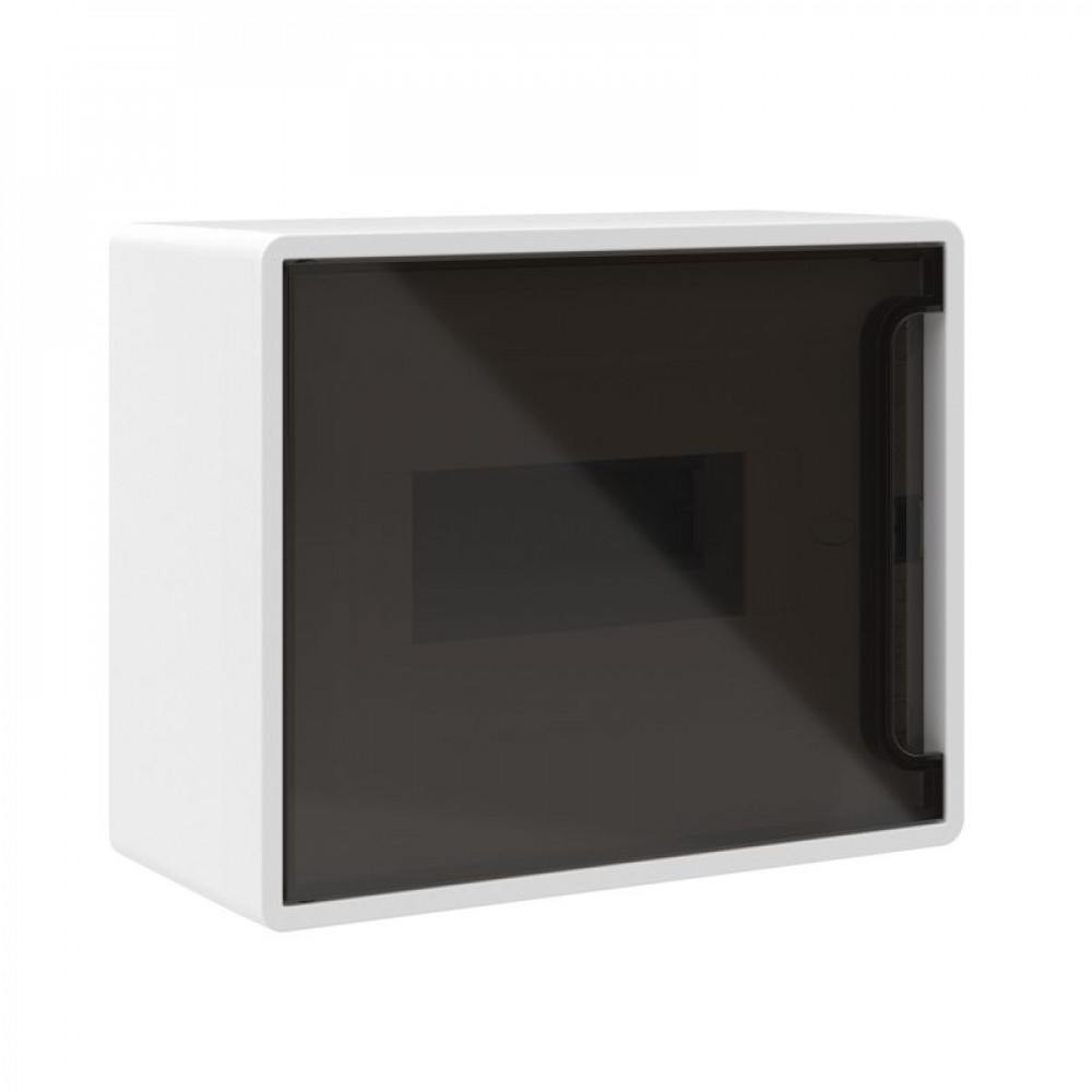 Описание Щит 8 мод настенный, белый, с тонированной дверцей, с 1 шиной PEN на 8 отв. F08W1WD