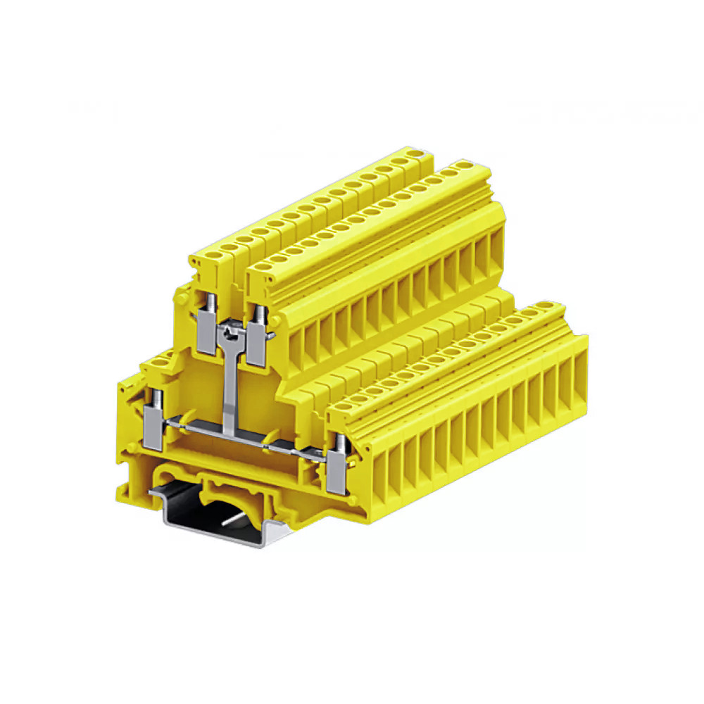 Этажная клемма, 2 этажа, межэтажное соединение, тип фиксации провода: винтовой, номинальное сечение: 4 мм кв., 32A, 500V, ширина: 6,2 мм, цвет: желтый, тип монтажа: DIN35