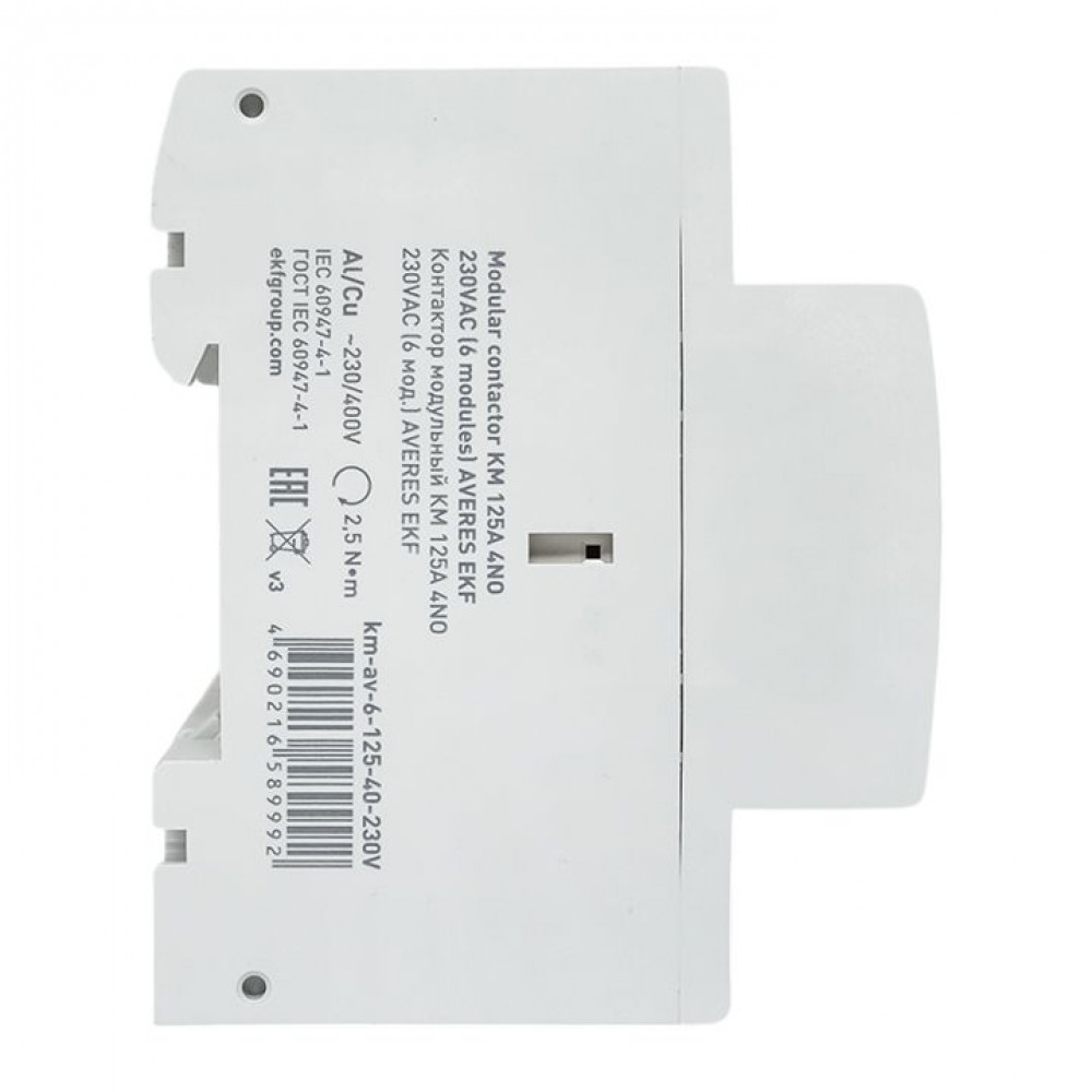 Контактор модульный КМ 125А 4NO 230VAC (6 мод.) AVERES EKF, Контактор в модульном исполнении