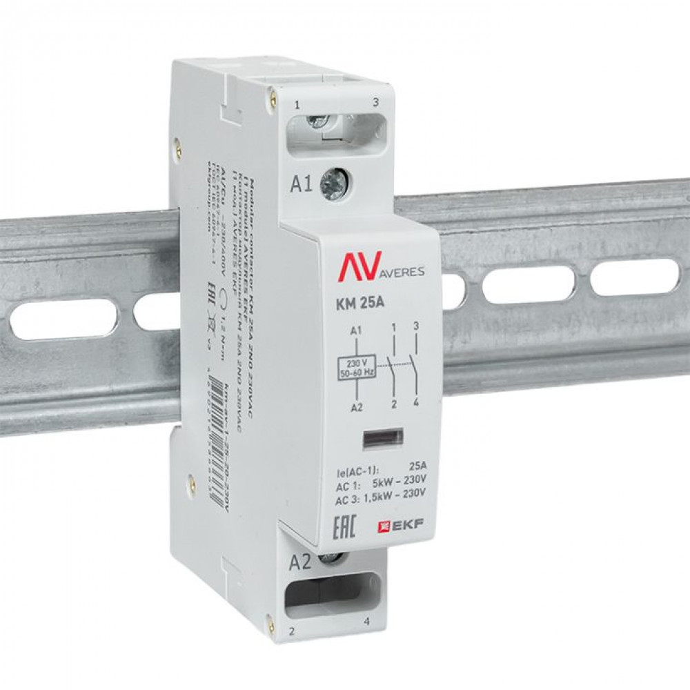 Контактор модульный КМ 25А 2NО 230VAC (1 мод.) AVERES EKF, Контактор в модульном исполнении