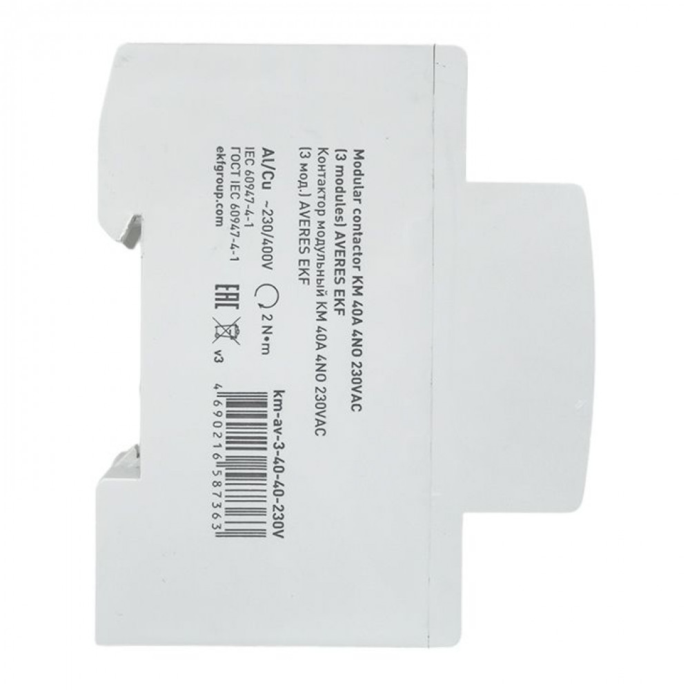 Контактор модульный КМ 40А 4NO 230VAC (3 мод.) AVERES EKF, Контактор в модульном исполнении