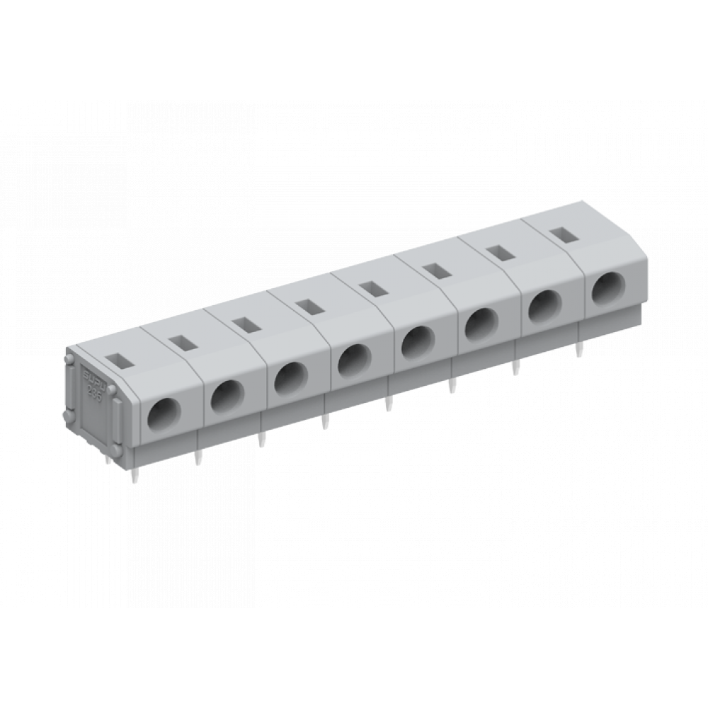 Клемма, горизонтальный подвод кабеля, на плату, шаг: 7.5 мм, 8 полюсов, фиксация провода Push-in, исполнение: два вывода на полюс, 630V, 17,5A, цвет: серый