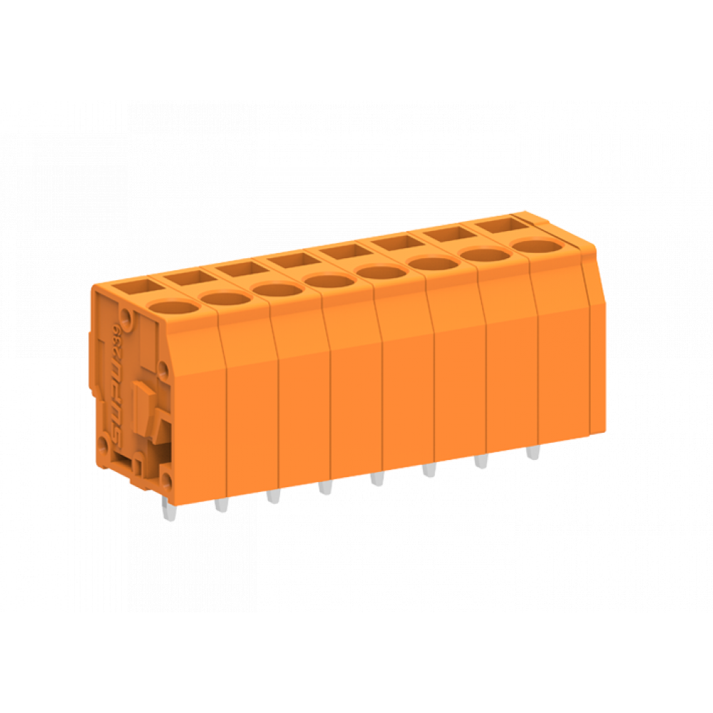 Клемма, вертикальный подвод кабеля, на плату, шаг: 5.0 мм, 7 полюсов, фиксация провода пружинная, исполнение: стандартное, 320V, 24A, цвет: оранжевый