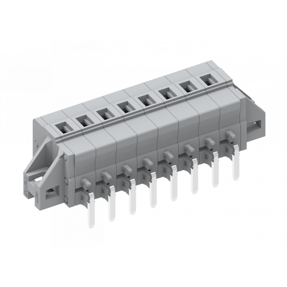 Клемма, горизонтальный, подвод кабеля, на плату, шаг: 5.0 мм, 3 полюса, фиксация провода пружинная, исполнение: с монтажными фланцами, 320V, 12A, цвет: серый