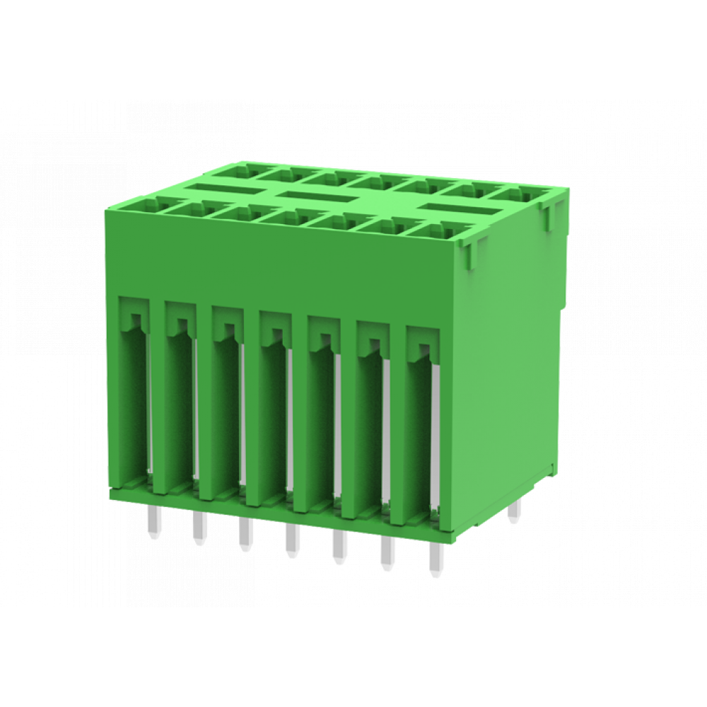 Доставка Вилочный разъем на плату MC-DPA3.81V10-0002 , Вилочный разъем, 2 этажа, вертикальный, на плату, шаг: 3.81 мм, 10x2 полюсов, фиксация на плате пайкой, исполнение: стандартное, 160V, 8A, цвет: зеленый