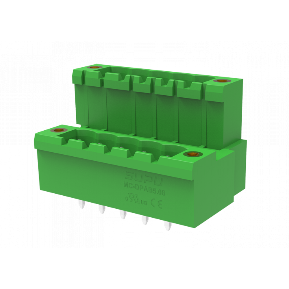 Доставка Вилочный разъем на плату MC-DPAB5.08V32-F-0001 , Вилочный разъем, 2 этажа, вертикальный, на плату, шаг: 5.08 мм, 32х2 полюса, фиксация на плате пайкой, исполнение: с монтажными фланцами, 160V, 8A, цвет: зеленый