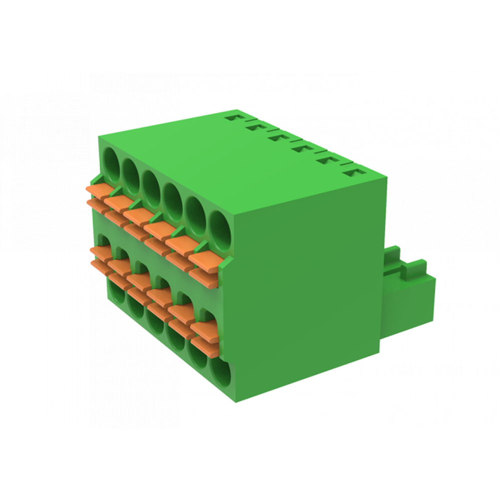 Розеточный разъем, прямой, 2 этажа, на кабель, шаг: 3.5 мм, 4 полюса, фиксация провода Push-in, исполнение: стандартное, 160V, 8A, цвет: зеленый