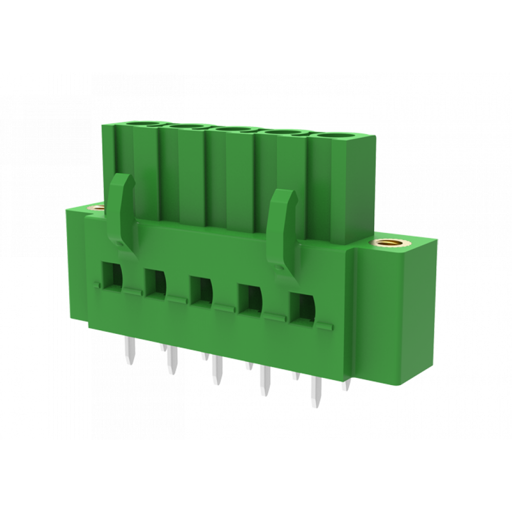 Доставка Розеточный разъем на плату MC-RU5.08SV16-F-0001 , Розеточный разъем, вертикальный на плату, шаг: 5.08 мм, 16 полюсов, фиксация на плате пайкой, исполнение: с монтажными фланцами, 320V, 18A, цвет: зеленый