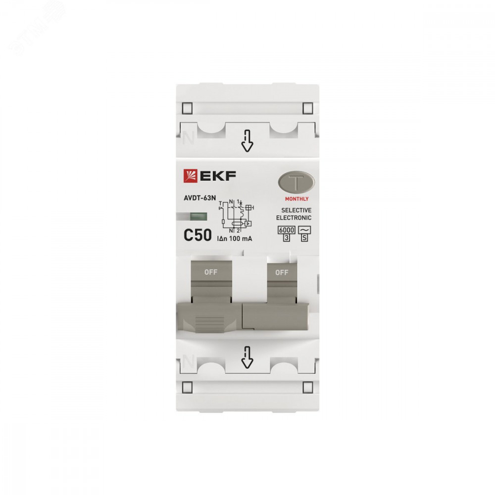 Автоматический выключатель дифференциального тока селективный АВДТ-63N (S) 1P+N 50А 100мА характеристика C тип AC электронный 6кА PROXIMA EKF, Дифференциальная защита: УЗО, дифф блок