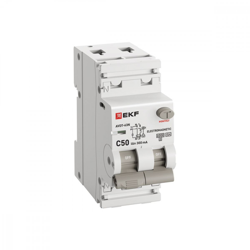 Автоматический выключатель дифференциального тока АВДТ-63N 1P+N 50А 300мА характеристика C тип A электромеханический 6кА PROXIMA EKF, Дифференциальная защита: УЗО, дифф блок