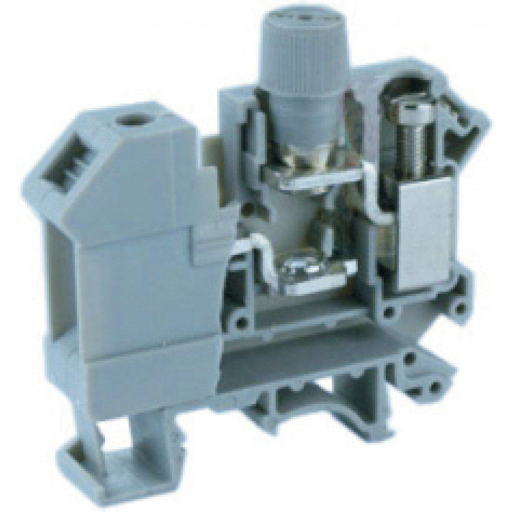 Предохранительная клемма, тип предохранителя: 5x25, тип фиксации провода: винтовой, номинальное сечение: 10 мм кв., 10A, 500V, ширина: 12 мм, цвет: серый, тип монтажа: DIN35