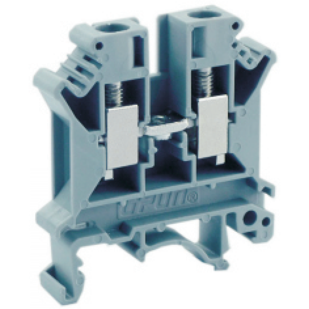 Проходная клемма, тип фиксации провода: винтовой, номинальное сечение: 6 мм кв., 41A, 800V, ширина: 8,2 мм, цвет: серый, тип монтажа: DIN35, винтовая перемычка, зажимная клетка: латунь