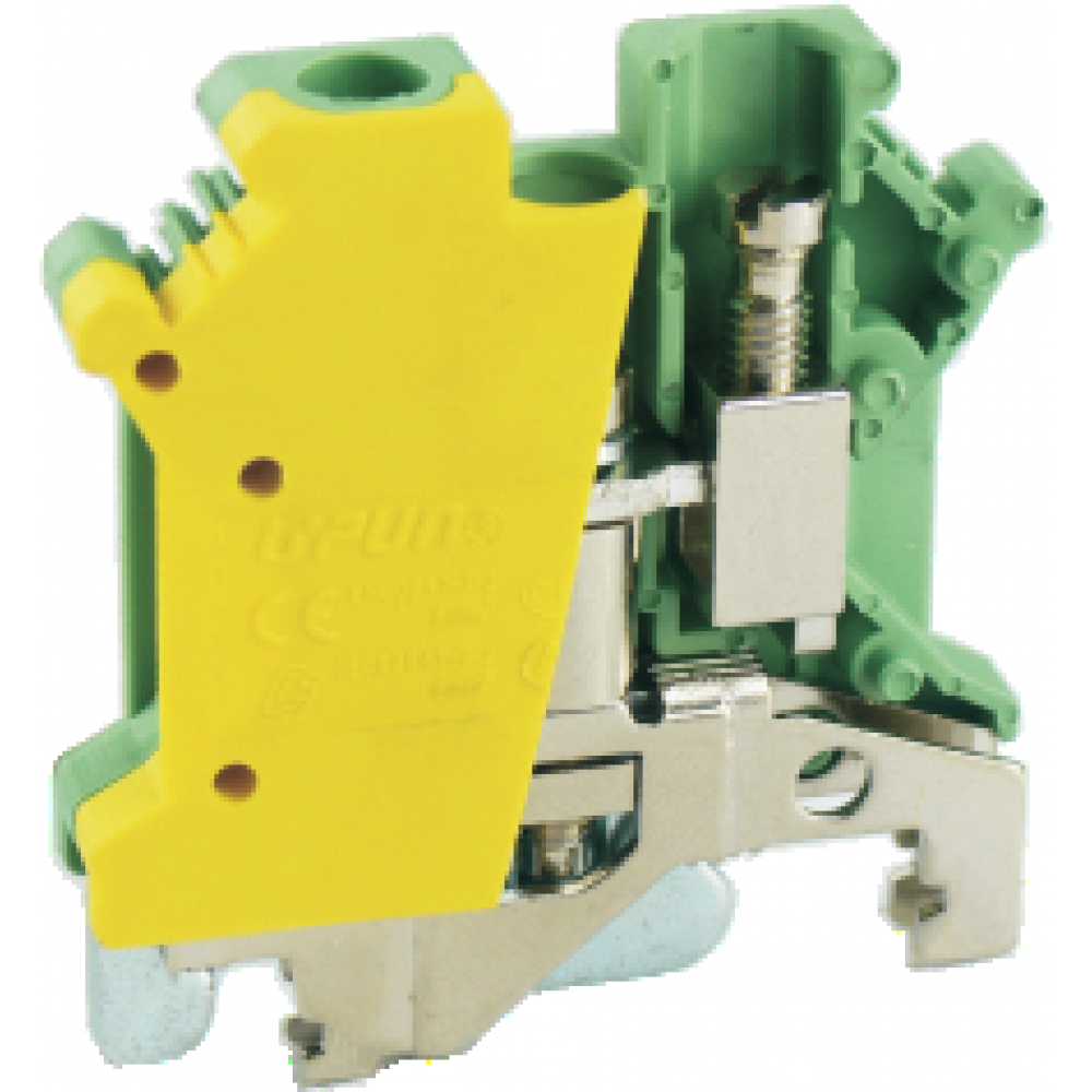 Заземляющая клемма, тип фиксации провода: винтовой, номинальное сечение: 6 мм кв., ширина: мм, цвет: желто-зеленый, тип монтажа: DIN35