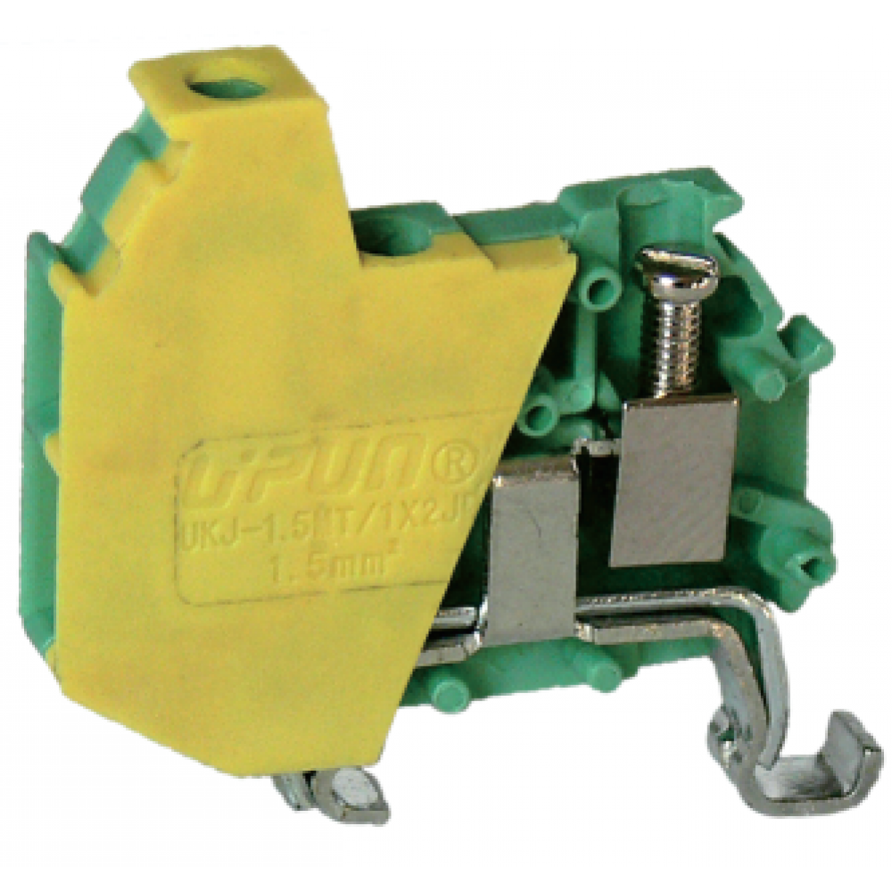Заземляющая клемма (MINI) UKJ-1.5MT/1X2JD, Заземляющая клемма, MINI, боковой подвод кабеля, 3 точки подключения, тип фиксации провода: винтовой, номинальное сечение: 1,5 мм кв., 400V, ширина: 4,2 мм, цвет: желто-зеленый, тип монтажа: DIN35
