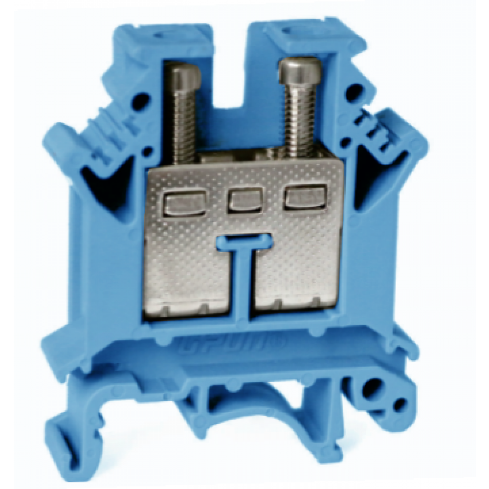 Проходная клемма, тип фиксации провода: винтовой, номинальное сечение: 16 мм кв., 101A, 800V, ширина: 12,2 мм, цвет: синий, тип монтажа: DIN35