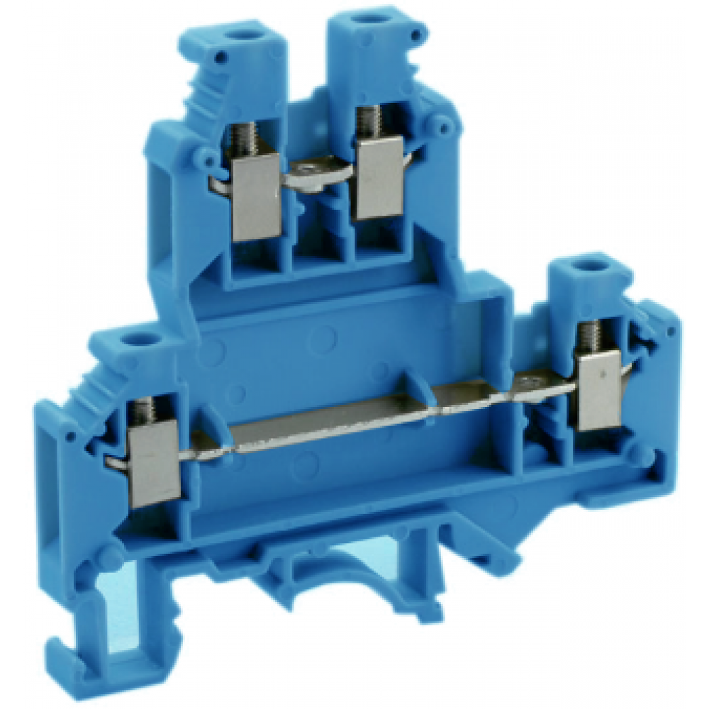 Этажная клемма, 2 этажа, тип фиксации провода: винтовой, номинальное сечение: 2,5 мм кв., 32A, 500V, ширина: 5,2 мм, цвет: синий, тип монтажа: DIN35