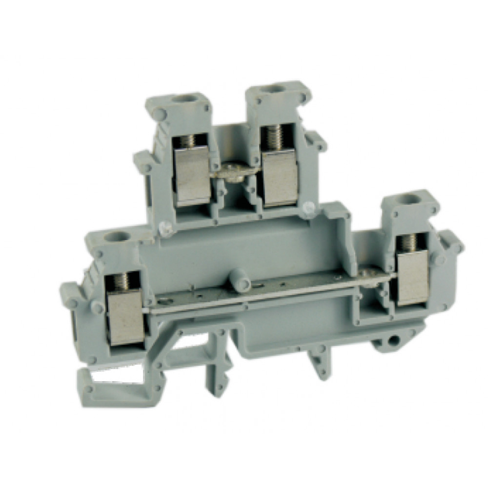 Этажная клемма, 2 этажа, тип фиксации провода: винтовой, номинальное сечение: 2,5 мм кв., 24A, 500V, ширина: 5,2 мм, цвет: серый, тип монтажа: DIN35