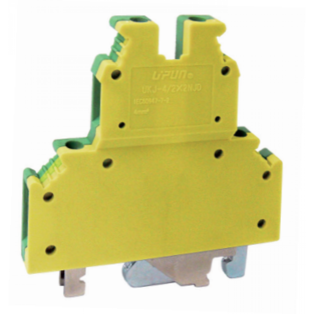 Доставка Заземляющая клемма UKJ-4/2X2NJD , Заземляющая этажная клемма, 2 этажа, тип фиксации провода: винтовой, номинальное сечение: 4 мм кв., ширина: 6,2 мм, цвет: желто-зеленый, тип монтажа: DIN35