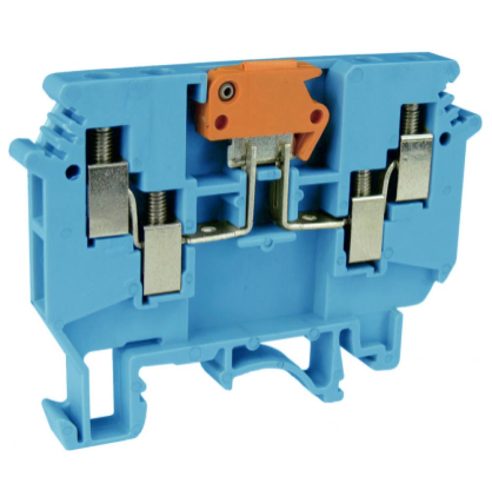 Клемма с ножевым размыкателем, 4 точки подключения, тип фиксации провода: винтовой, номинальное сечение: 4 мм кв., 16A, 690V, ширина: 6,2 мм, цвет: синий, тип монтажа: DIN35
