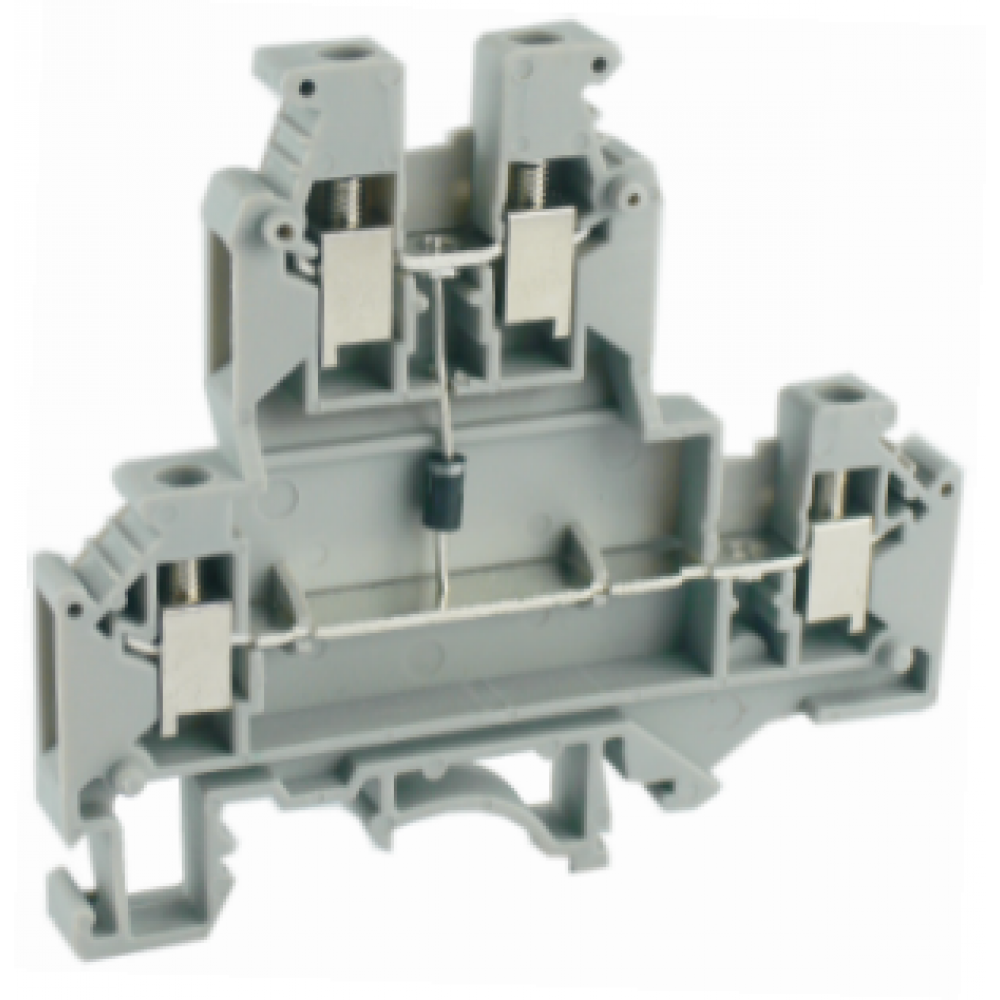 Этажная клемма, 2 этажа, с диодом, тип фиксации провода: винтовой, номинальное сечение: 4 мм кв., 32A, 500V, ширина: 6,2 мм, цвет: серый, тип монтажа: DIN35