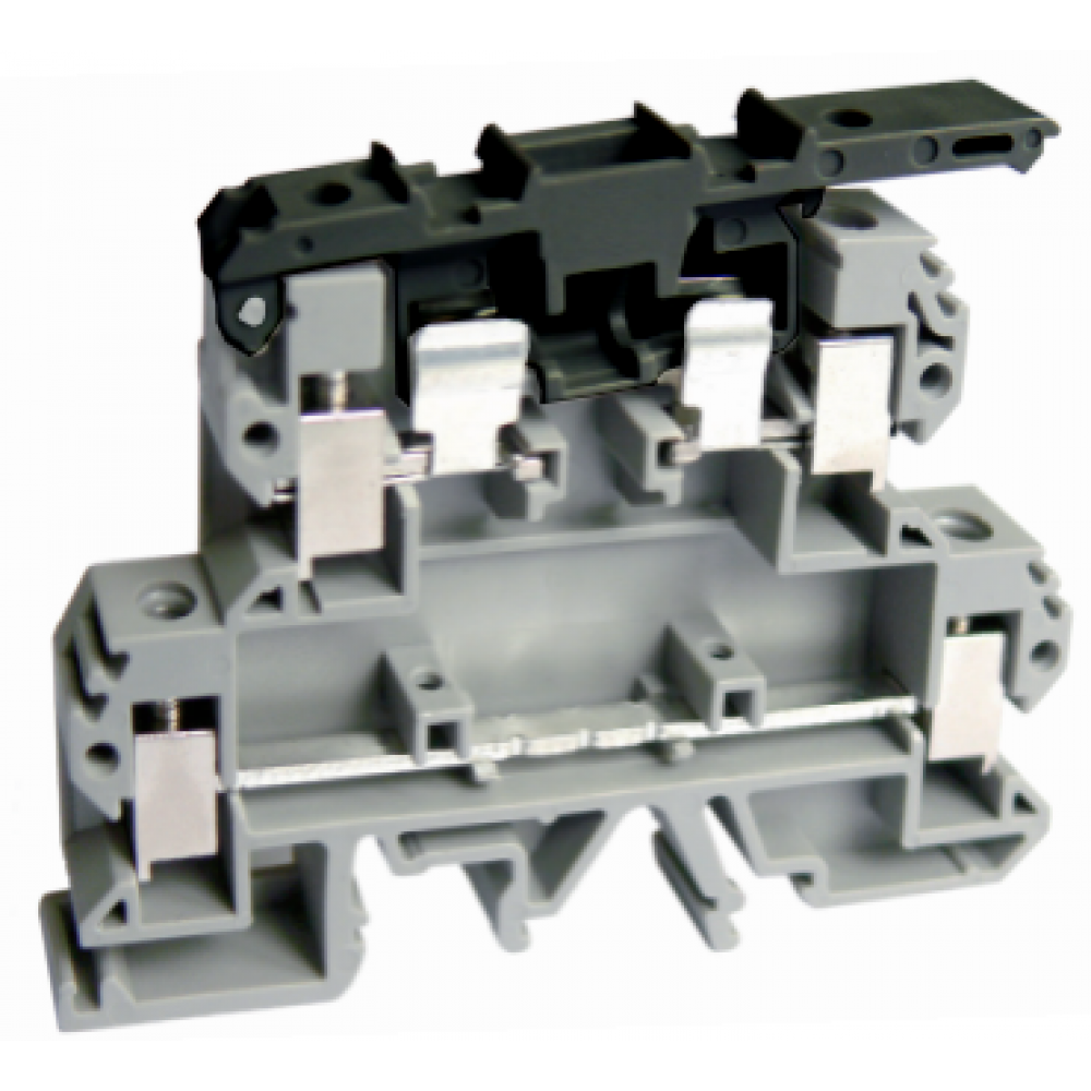 Этажная клемма, 2 этажа, с предохранителем, тип фиксации провода: винтовой, номинальное сечение: 4 мм кв., 6,3A, 500V, ширина: 6,2 мм, цвет: черный, тип монтажа: DIN35