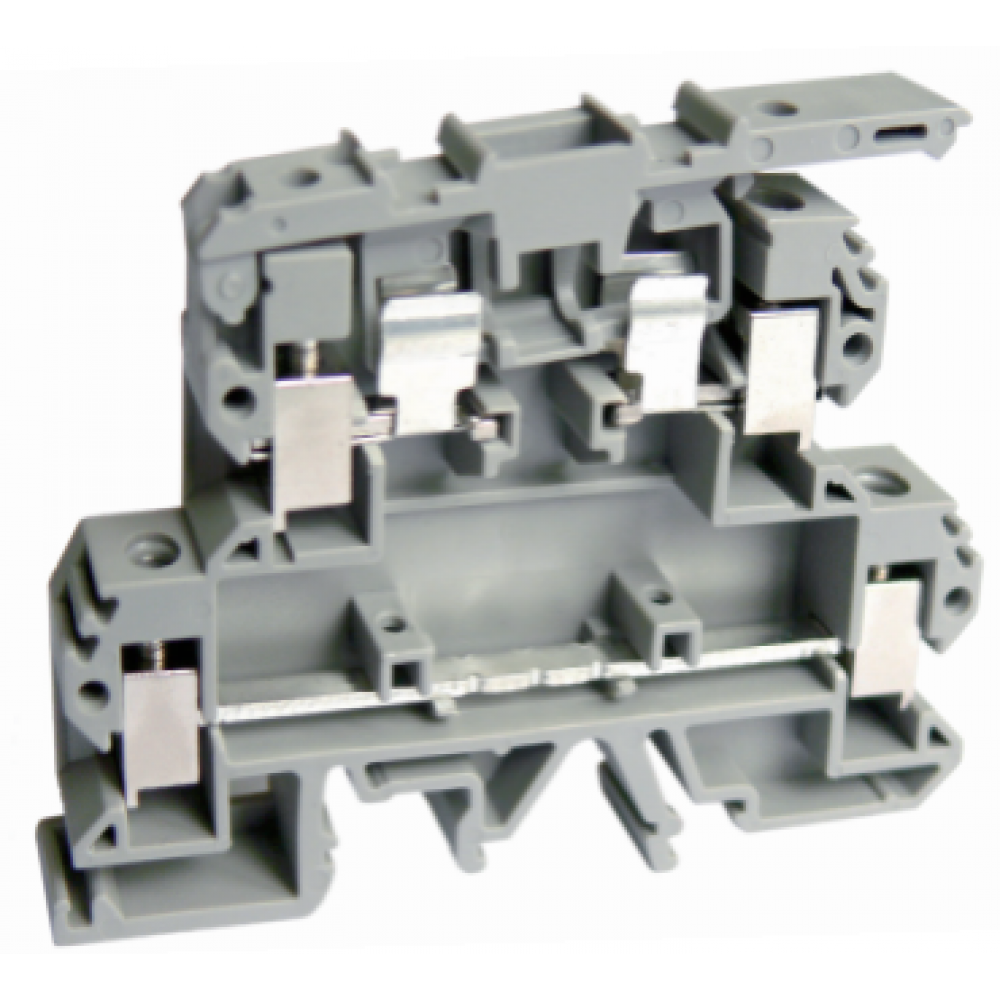 Этажная клемма, 2 этажа, с предохранителем, тип фиксации провода: винтовой, номинальное сечение: 4 мм кв., 6,3A, 500V, ширина: 6,2 мм, цвет: серый, тип монтажа: DIN35 стандарт GB/T14048.1,