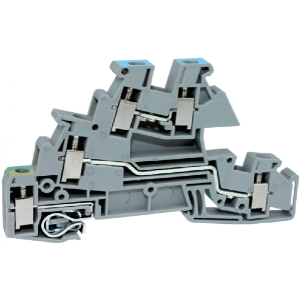 Этажная клемма, 3 этажа, N-L-PE, нижний ряд с заземлением, тип фиксации провода: винтовой, номинальное сечение: 4 мм кв., ширина: 6,2 мм, цвет: серый, тип монтажа: DIN35