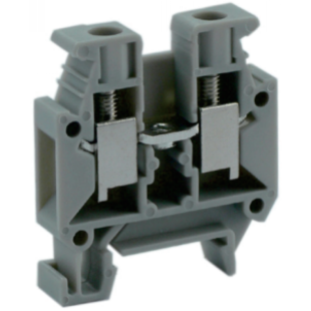 Проходная клемма, MINI, боковой подвод кабеля, 2 точки подключения, тип фиксации провода: винтовой, номинальное сечение: 4 мм кв., 32A, 500V, ширина: 6 мм, цвет: серый, тип монтажа: DIN15