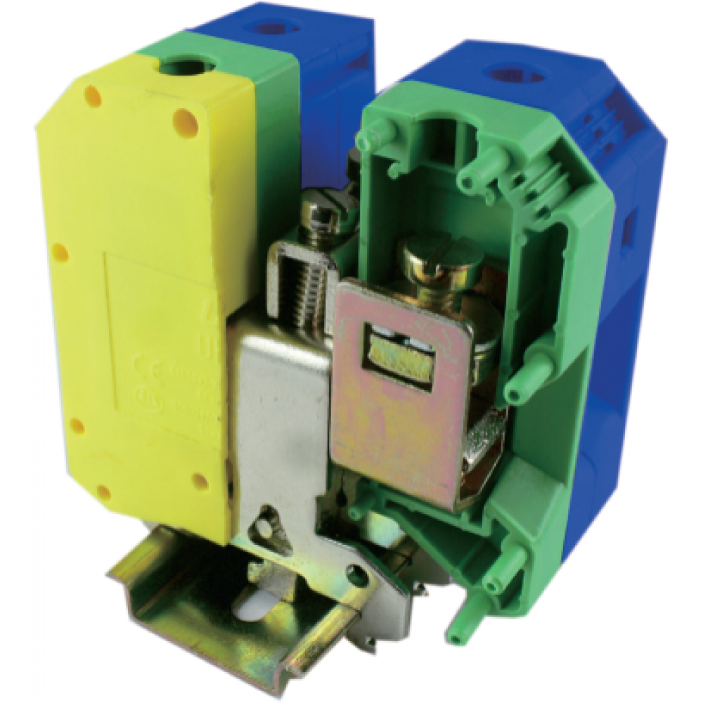 Доставка Клеммная сборка UKJ-50JD/N , Клеммная сборка из 2 клемм: UKJ-50(BU), UKJ-50JD, тип фиксации провода: винтовой, номинальное сечение: 50 мм кв., 150A, 1000V, цвет: синий/желто-зеленый, тип монтажа: DIN35