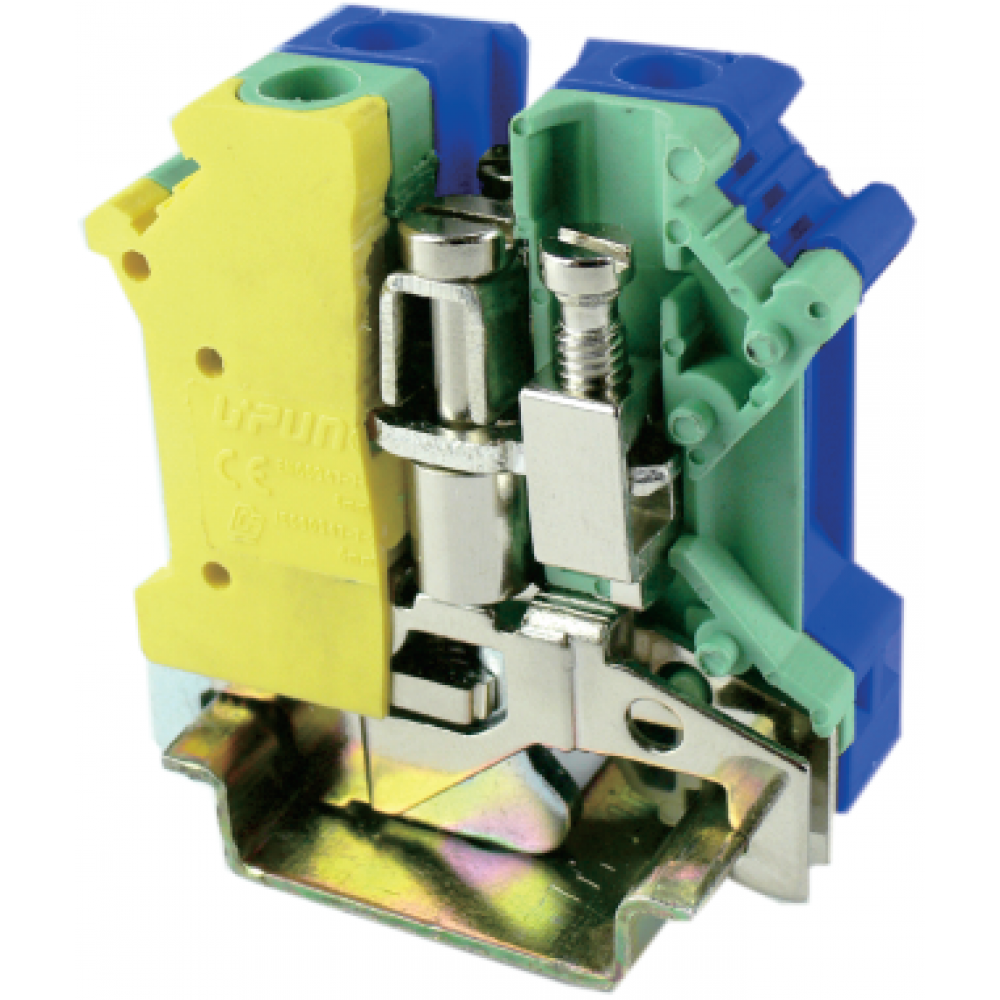 Доставка Клеммная сборка UKJ-6JD/N , Клеммная сборка из 2 клемм: UKJ-6(BU), UKJ-6JD, тип фиксации провода: винтовой, номинальное сечение: 6 мм кв., 57A, 800V, цвет: синий/желто-зеленый, тип монтажа: DIN35