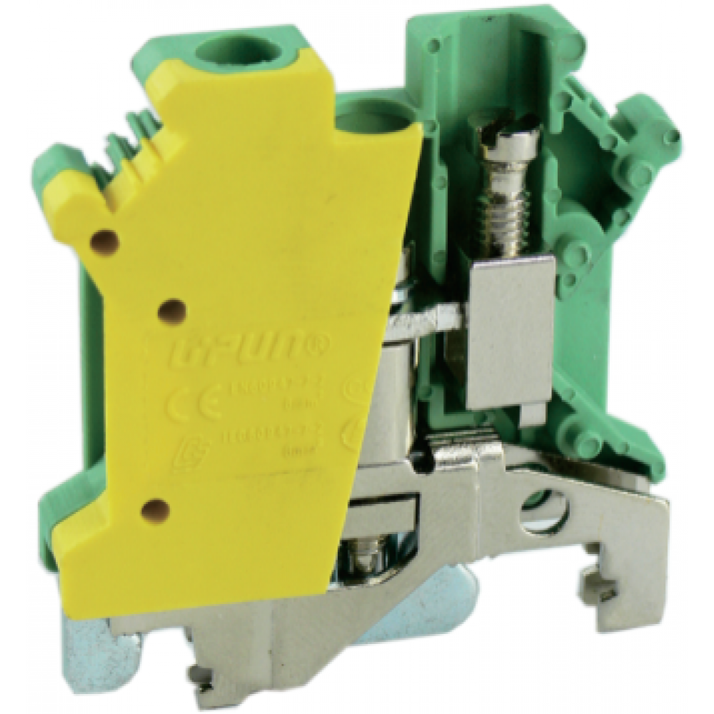 Заземляющая клемма, тип фиксации провода: винтовой, номинальное сечение: 6 мм кв., ширина: мм, цвет: желто-зеленый, тип монтажа: DIN35