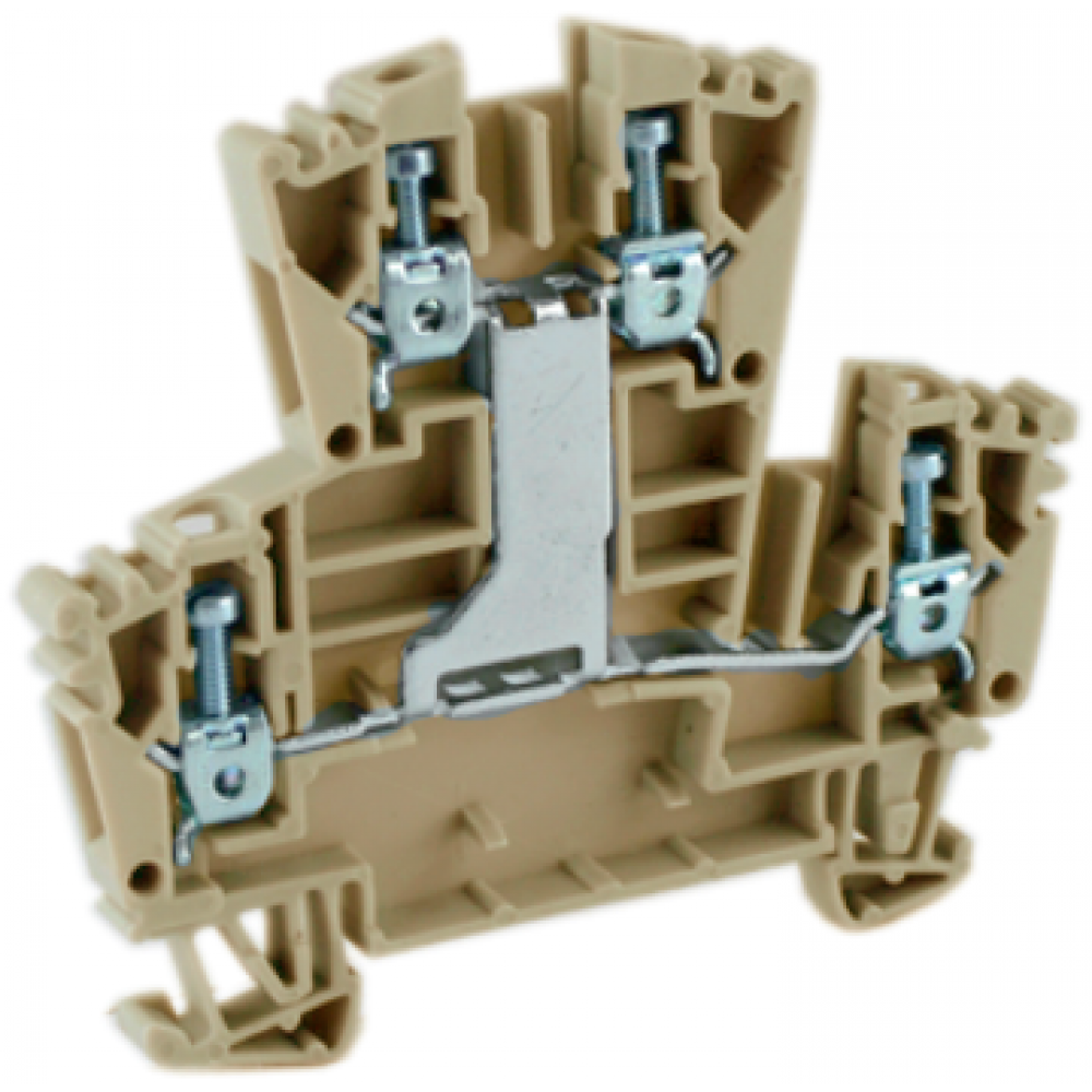 Этажная клемма, 2 этажа, межэтажное соединение, тип фиксации провода: винтовой, номинальное сечение: 2,5 мм кв., 24A, 400V, ширина: 5,2 мм, цвет: бежевый, тип монтажа: DIN35