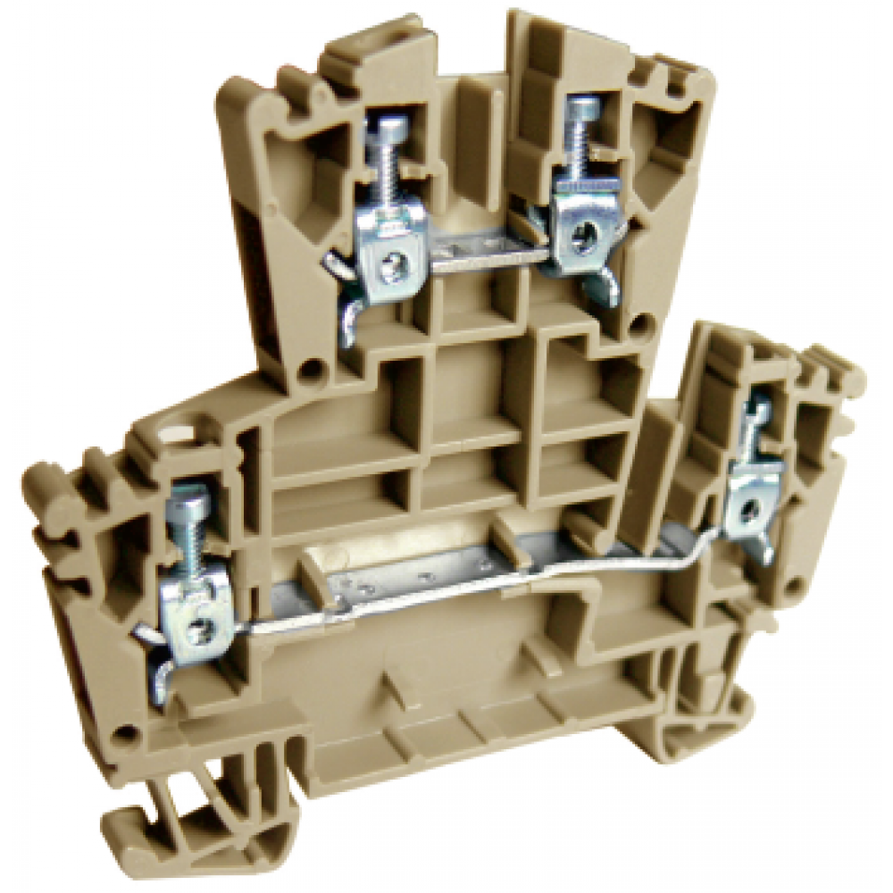 Этажная клемма, 2 этажа, тип фиксации провода: винтовой, номинальное сечение: 2,5 мм кв., 24A, 400V, ширина: 5,2 мм, цвет: бежевый, тип монтажа: DIN35
