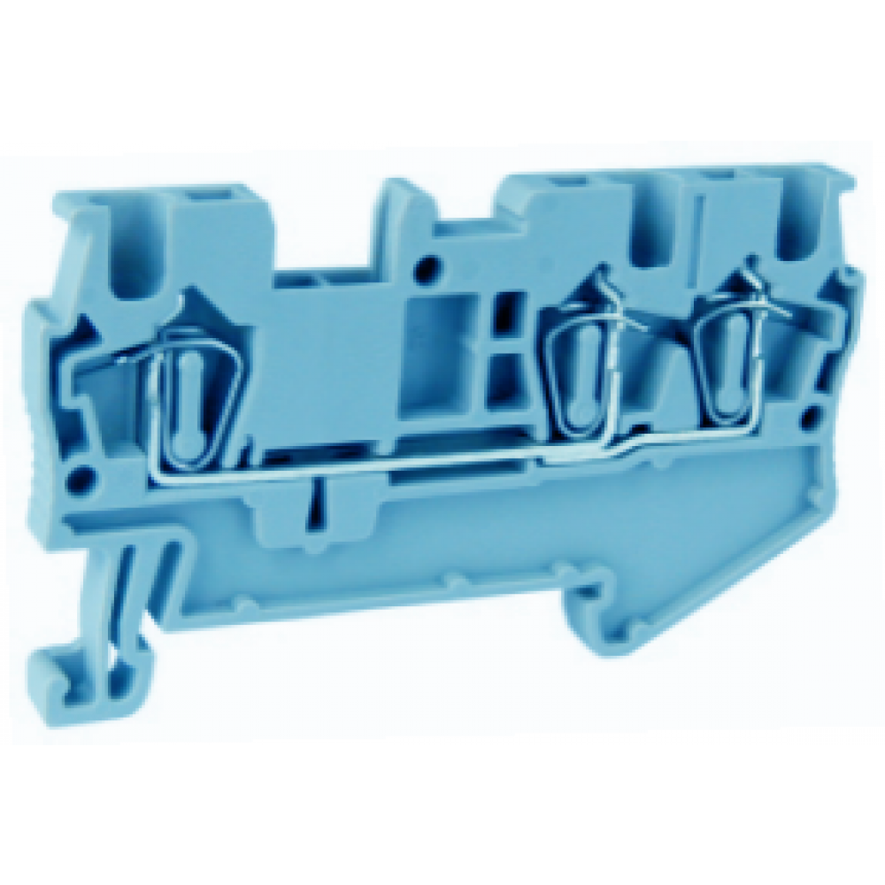 Проходная клемма, 3 точки подключения, тип фиксации провода: пружинный, номинальное сечение: 1.5 мм кв., 17,5A, 500V, ширина: 4 мм, цвет: синий, тип монтажа: DIN35