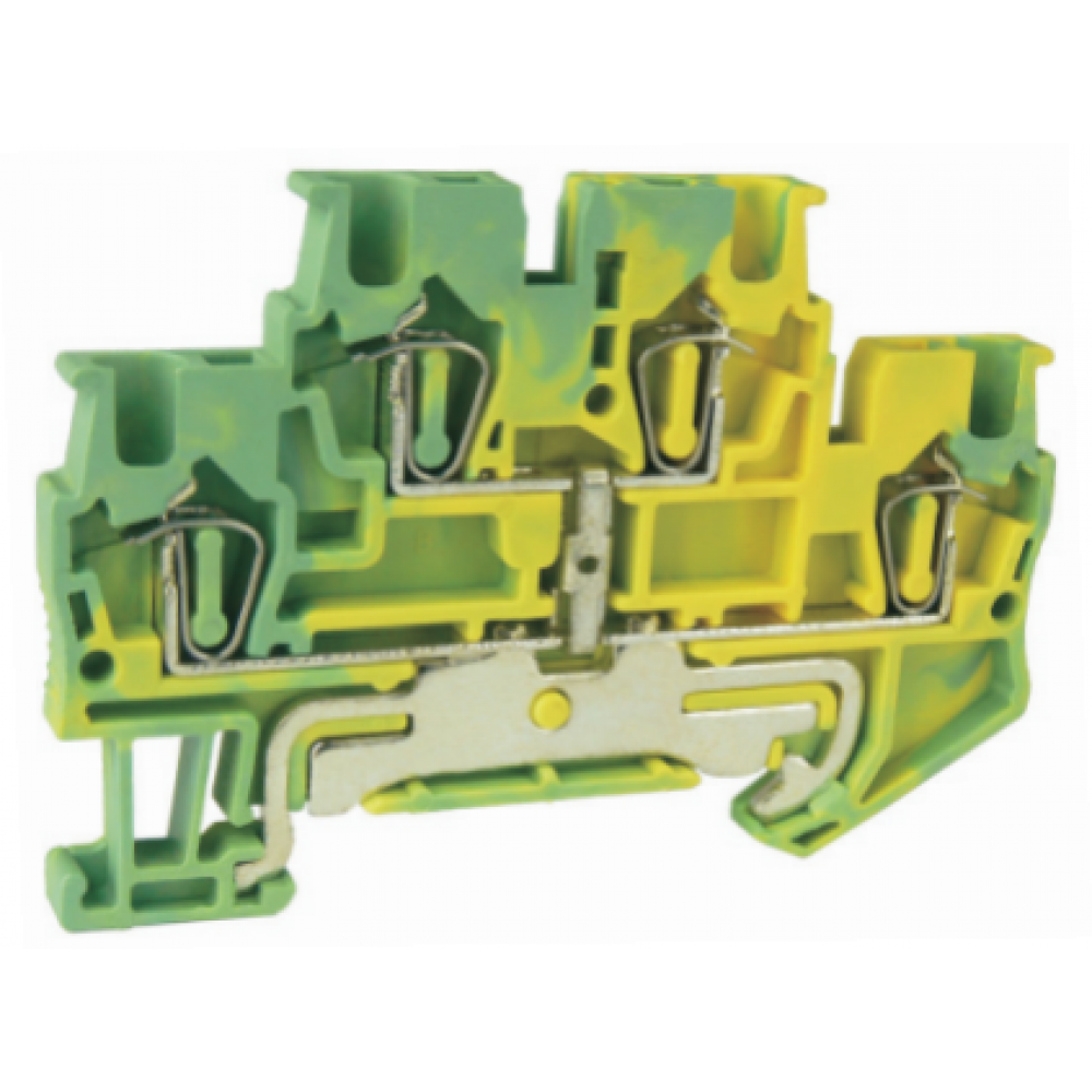 Заземляющая этажная клемма, 2 этажа, тип фиксации провода: пружинный, номинальное сечение: 1,5 мм кв., ширина: 4 мм, цвет: желто-зеленый, тип монтажа: DIN35