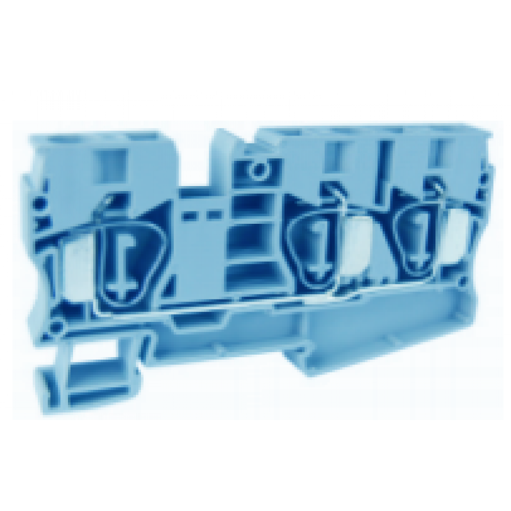 Проходная клемма, 3 точки подключения, тип фиксации провода: пружинный, номинальное сечение: 10 мм кв., 57A, 1000V, ширина: 10,2 мм, цвет: синий, тип монтажа: DIN35