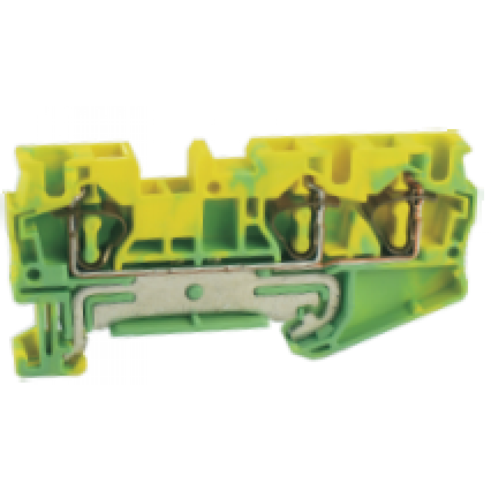 Заземляющая клемма, 3 точки подключения, тип фиксации провода: пружинный, номинальное сечение: 16 мм кв., ширина: 12,2 мм, цвет: желто-зеленый, тип монтажа: DIN35, стандарт GB/T14048.1,
