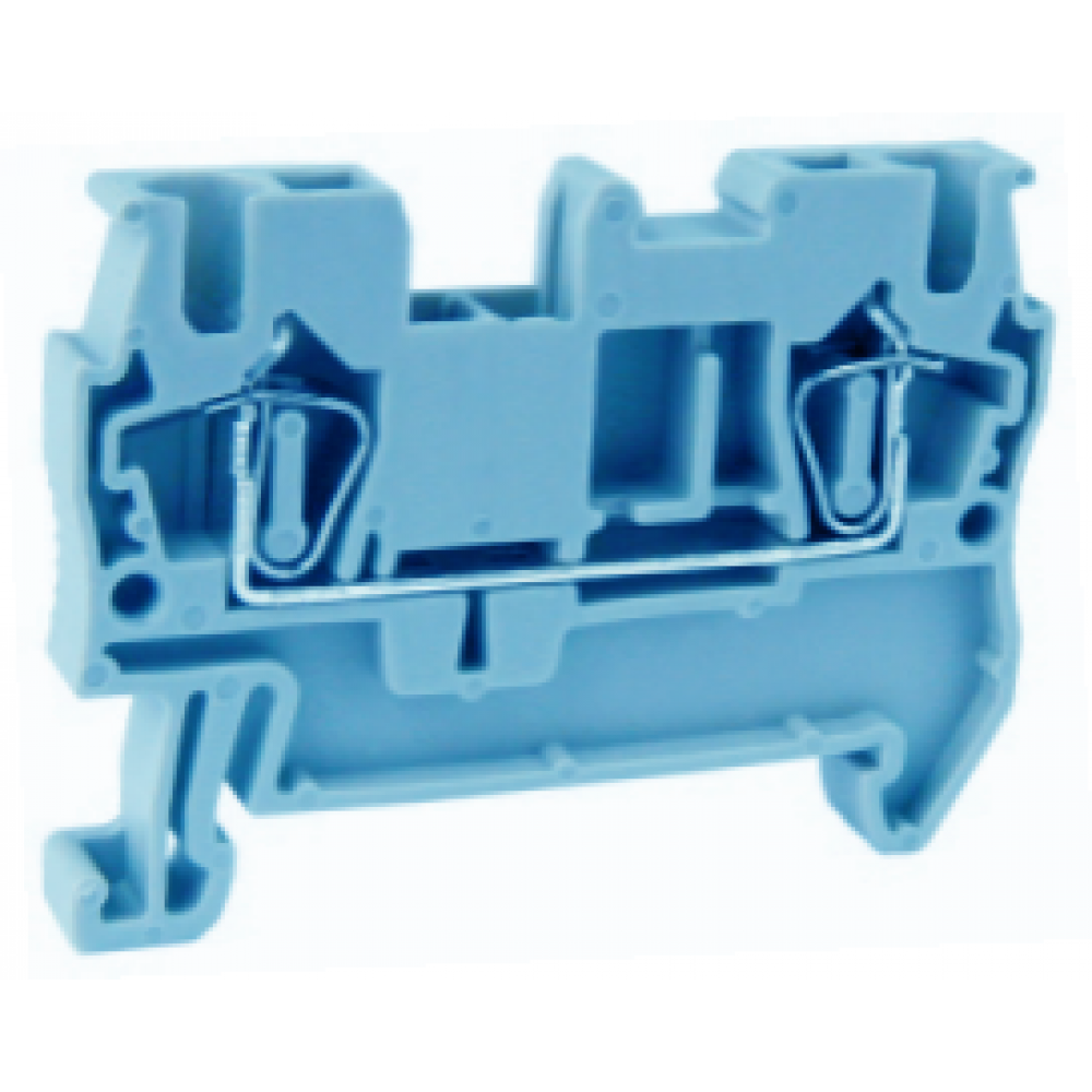 Проходная клемма, тип фиксации провода: пружинный, номинальное сечение: 2,5 мм кв., 24A, 800V, ширина: 5 мм, цвет: синий, тип монтажа: DIN35