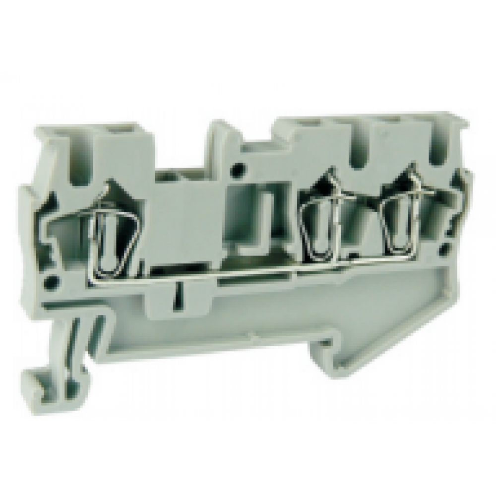 Проходная клемма, 3 точки подключения, тип фиксации провода: пружинный, номинальное сечение: 2,5 мм кв., 24A, 1000V, ширина: 5 мм, цвет: серый, тип монтажа: DIN35