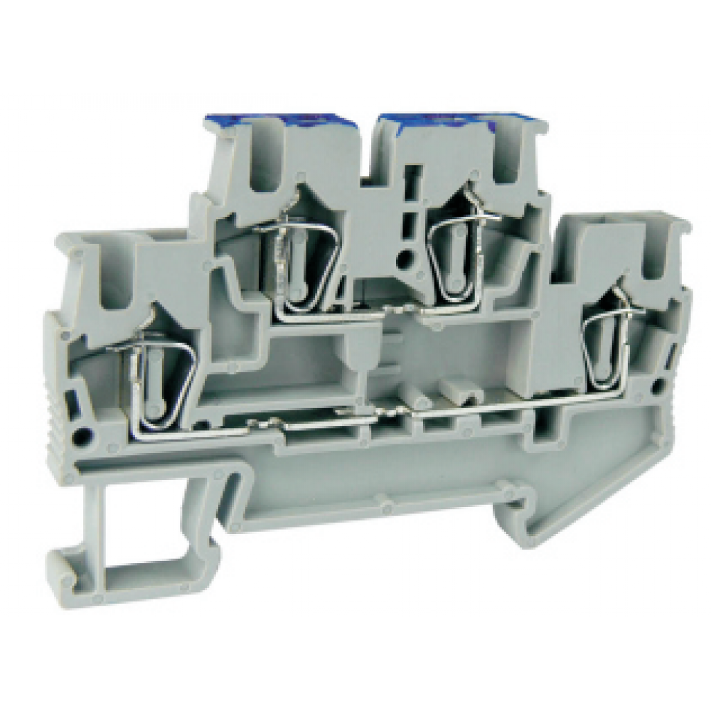 Этажная клемма, 2 этажа, тип фиксации провода: пружинный, номинальное сечение: 2,5 мм кв., 26A, 500V, ширина: 5,2 мм, цвет: серый, тип монтажа: DIN35