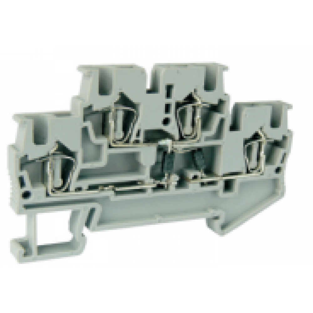 Этажная клемма, 2 этажа, с диодом, тип фиксации провода: пружинный, номинальное сечение: 2,5 мм кв., 26A, 500V, ширина: 5,2 мм, цвет: серый, тип монтажа: DIN35, стандарт GB/T14048.1,