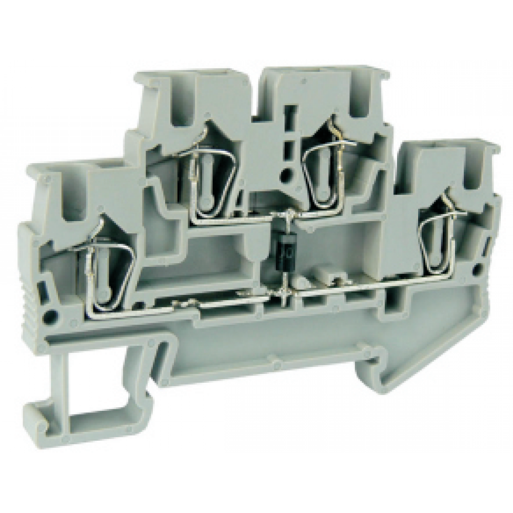 Этажная клемма, 2 этажа, с диодом, тип фиксации провода: пружинный, номинальное сечение: 2,5 мм кв., 26A, 500V, ширина: 5,2 мм, цвет: серый, тип монтажа: DIN35, стандарт GB/T14048.1,