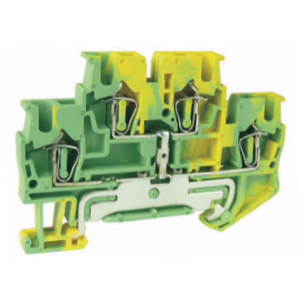 Заземляющая этажная клемма, 2 этажа, тип фиксации провода: пружинный, номинальное сечение: 2,5 мм кв., ширина: 5,2 мм, цвет: желто-зеленый, тип монтажа: DIN35, стандарт GB/T14048.1,